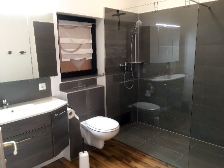 Unsere neu umgebaute Ferienwohnung IV befindet sich im Erdgeschoss links unseres Ferienhauses. Neben einer sehr modern eingerichteten Wohnung mit Flachbildschirm und WLAN gibt es außerdem ein Badezimmer mit begehbarer Dusche, ein Schlafzimmer sowie einen sehr großen Wohn- und Essbereich mit integrierter Küche, in der es an nichts fehlt. So ist beispielsweise eine Senseo-Kaffee-Pad-Maschine für den perfekten Kaffeegenuß vorhanden.