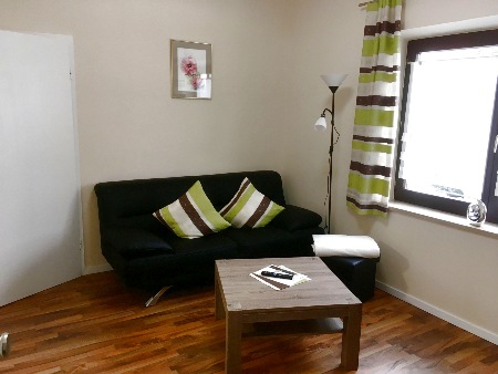 Dusche, ein Schlafzimmer mit Doppelbett, ein weiteres, an dieses Schlafzimmer angegliedertes Zimmer, welches auch seperates Schlafen gestattet. Weiter ist ein Wohnzimmer und eine voll ausgestattete Essküche mit Senseo-Kaffee-Pad-Maschine für den perfekten Kaffeegenuß vorhanden.